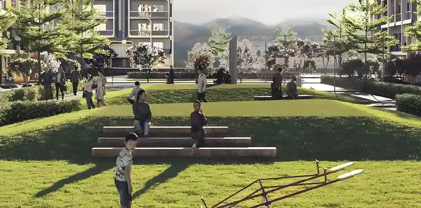 The project is located on the edge of Aravali Hills and offers enormous open spaces with amazing views.